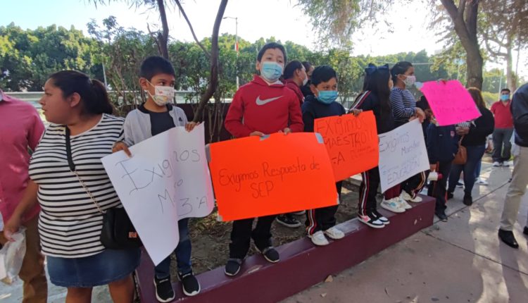 Tijuana, 19 de septiembre de 2022.- Padres de familia y algunos alumnos del tercer año de la escuela V Ayuntamiento y del primero y quinto año de la Héroes de Chapultepec, se manifestaron afuera de las oficinas del Sistema Educativo en demanda de que el gobierno estatal asigne a los maestros para que sus hijos puedan empezar el ciclo escolar.